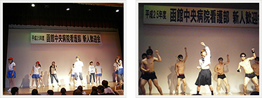 毎年、年末に行われる大忘年会では、看護師長たちの余興のほか、病棟でダンスを披露する等、看護部は余興の取り組みにも一生懸命に行います。